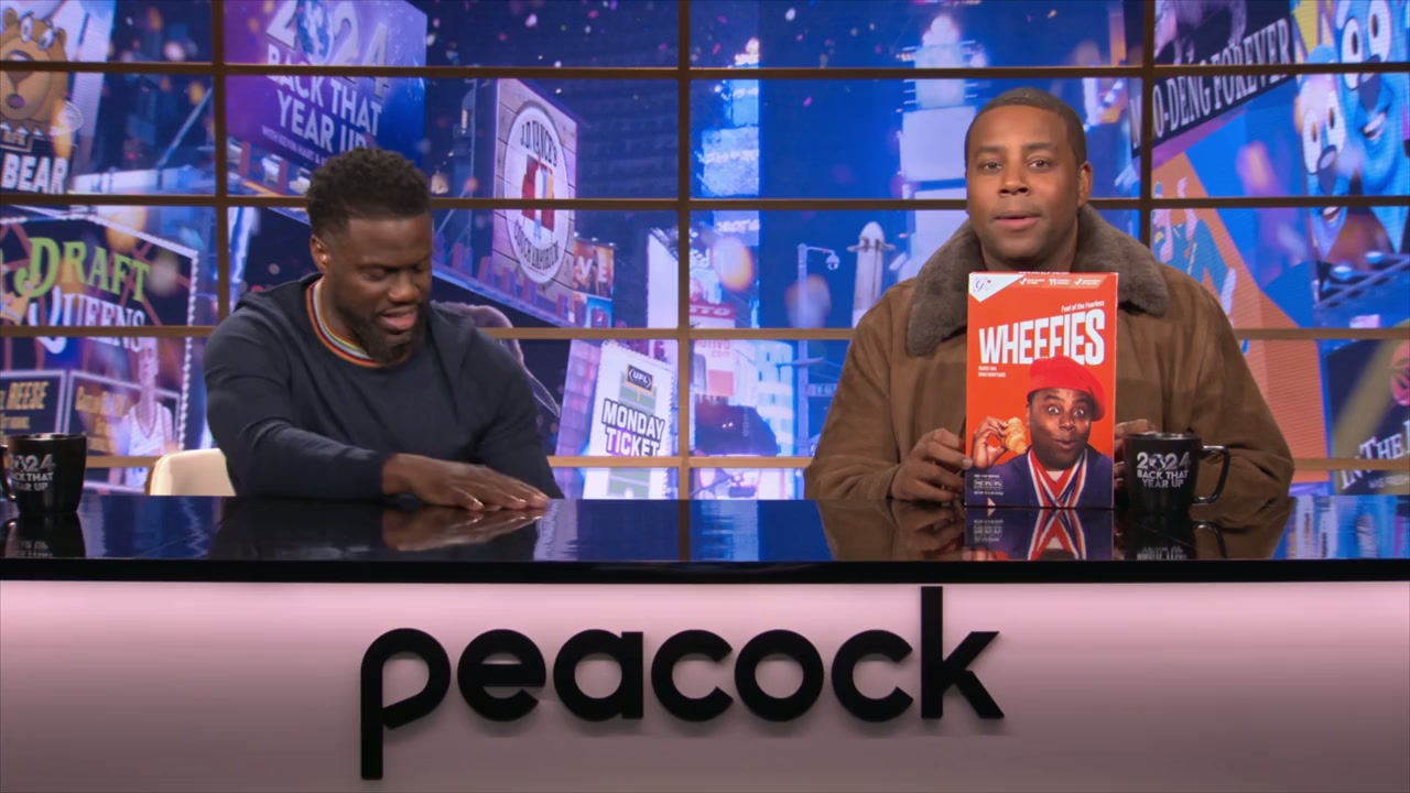 Kevin Hart and Kenan Thompson laugh at 2024 with Jon Hamm, Mookie Betts, Nate Bargatze and more.