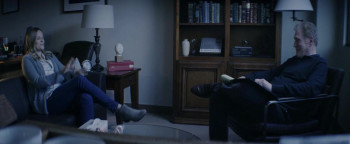 The film Opens with Dr. Jane Mathis (Vanessa Shaw), a trauma psychiatrist, working late into the evening hours (with Holiday music playing in the background) calling in prescription updates and performing patient checkup calls. Alone in her building, she sees the clock approaching midnight and goes to brew a pot of coffee when she hears a loud crashing sound from down the hall. She walks into the waiting room to see her patient, Nora (India Eisley), cutting her own wrists and hands with a shard of glass. Nora tells Mathis that she "Did what she told her to do..." and that she was wrong, then proceeds to attack Mathis with the shard of glass and then slits her own throat. Fast forward two years. The scene opens with Dr. Mathis, apparently still dealing with the trauma of the attack, sitting in her car outside of her own therapist's office taking a prescription pill with coffee. She is seeing a friend and fellow therapist, Terry (William Atherton), to recover from the event, but her sessions are void of true emotion and guarded. She expresses to Terry that she wants to resume helping people who are recovering from traumatic events but then confesses that she is not ready to "go see Nora" yet (which tells the viewer that Nora is not dead) and then changes the subject. She also mentions that she's began a relationship which seems to impress Terry. Mathis sees quite a few patients in her home, but not those suffering from Trauma. The montage that presumes shows a bored and disconnected Mathis with her patients, doodling on her notepad rather than making notes and being frustrated with the lack of stimulation. One patient in particular glances at her prescription pad on the coffee table and requests something for anxiety. She tells the patient to try a few more sessions before she is willing to write a prescription (insinuating that she is now against prescribing meds to her patients). A new patient, who identifies himself simply as Alex, calls Dr. Mathis and begs her take him on as a post trauma patient and she agrees. That evening she self-medicates (notably not needing the water that she had turned the facet on in the bathroom to swallow) and goes to bed with the TV on. She awakes in the middle of the night to a crashing sound outside and goes to investigate. She discovers her trash can pushed over and while picking up the contents sees the bushes outside her house rustle. Walking towards the bushes to see the cause a figure flashes by and footsteps are heard running off, away from the house. She resumes cleaning up the spilled trash. Over her shoulder, Nora appears on the porch behind her but Mathis doesn't see her. She is gone when Mathis turns around and re-enters her home. Alex shows up to Jane's house for his first session, commenting on how he appreciates her lack of holiday decor. His face is terribly disfigured and he expresses frustration with his previous therapists and psychiatrists in general and that he doesn't see himself when he looks in the mirror. Alex states that he'd like something for his anxiety but Mathis refuses to prescribe him anything stating that drugs make things worse and that she isn't like the others and cares about the patients first. She states that she believes talking and exposing the issues that are affecting her patients helps the most. Later (presumably the next day) Jane and her friend Clara(Sydney Tamiia Poitier) go for a jog and Jane sees Nora in the woods along the side of her trail and becomes unnerved. Later Clara expresses to Jane that she's happy that Jane has resumed their jogging routine and states she's proud of her for her progress. The camera pans out and you see the two conversing from behind a tree, as if they are being watched, and can hear labored breathing. Later that evening Jane is home eating dinner with her boyfriend Miles (Aaron Stanford), a police officer, when he notices that she isn't eating. She blames the time of year but is remembering the scene in the woods in her mind during the discussion and the two joke about therapy to get work off their brains. Alex returns for a visit and explains that while shopping one day a child stared at him and made him feel like a freak. Alex talks about receiving a new face and how he doesn't feel like himself. Dr. Mathis tells him he needs "exposure therapy" to return to the accident and confront what happened to him. Alex tells Mathis he was on his way from work when he came upon a vehicle that had crashed but then states his memory is fractured and has a panic attack, failing to revisit the entire event. Dr. Mathis brings him out of the attack and teaches him a breathing exercise to use when he has attacks. Mathis re-tells a nightmare she had to Terry on her next visit about Nora and explains that when she work up, she felt, "heavy". Terry questions her about sleep paralysis and offers a script which she declines. He questions Mathis about her lack of progress, telling her that she is keeping something from him. She confesses that she has taken on a trauma patient that had been disfigured a few years ago and Terry reprimands her for taking on such a case. She tells Terry that trauma patients are what she's good at and she feels she's already helping Alex. That night Mathis is lying in bed when she hears crashing sounds from downstairs and calls Miles for help. She investigates to discover a sleepwalking Alex in her home and slaps him to wake him up. She declines to press charges against him but refuses to see Alex anymore as a patient despite his pleas and asks Miles to spend the night with her. She has a dream about Nora's first session where she asks if anyone would know that she was seeing her as a patient (which Mathis assures her that no one would) and then wakes up in an episode of sleep paralysis. This startles Miles, which Jane then explains and that she's ok, however for the remainder of the evening Jane fails to sleep and has flashbacks of the incident with Nora. No longer seeing