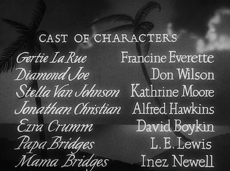 An all-black Caribbean island resort welcomes flashy dancer Gertie La Rue, forced to perform in this remote spot because she two-timed Al, her Harlem lover and backer, once too often. As Gertie amuses herself by dazzling the local men with her sex appeal, sanctimonious Mr. Christian (shades of 'Rain') schemes to either reform her or have her thrown off the island. On opening night, her sensuous performance exceeds Christian's worst fears...but more serious trouble awaits.—Rod Crawford
