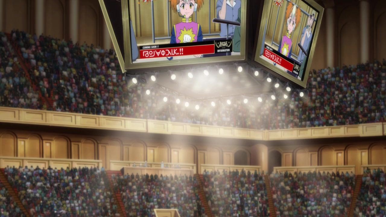 Hunters divided into "light" and "dark" factions. "Dark" hunters attack, injuring Killua and nearly killing Kurapika. Gon considers joining the "dark" side to gain strength to save friends after learning about the Association's misdeeds.
