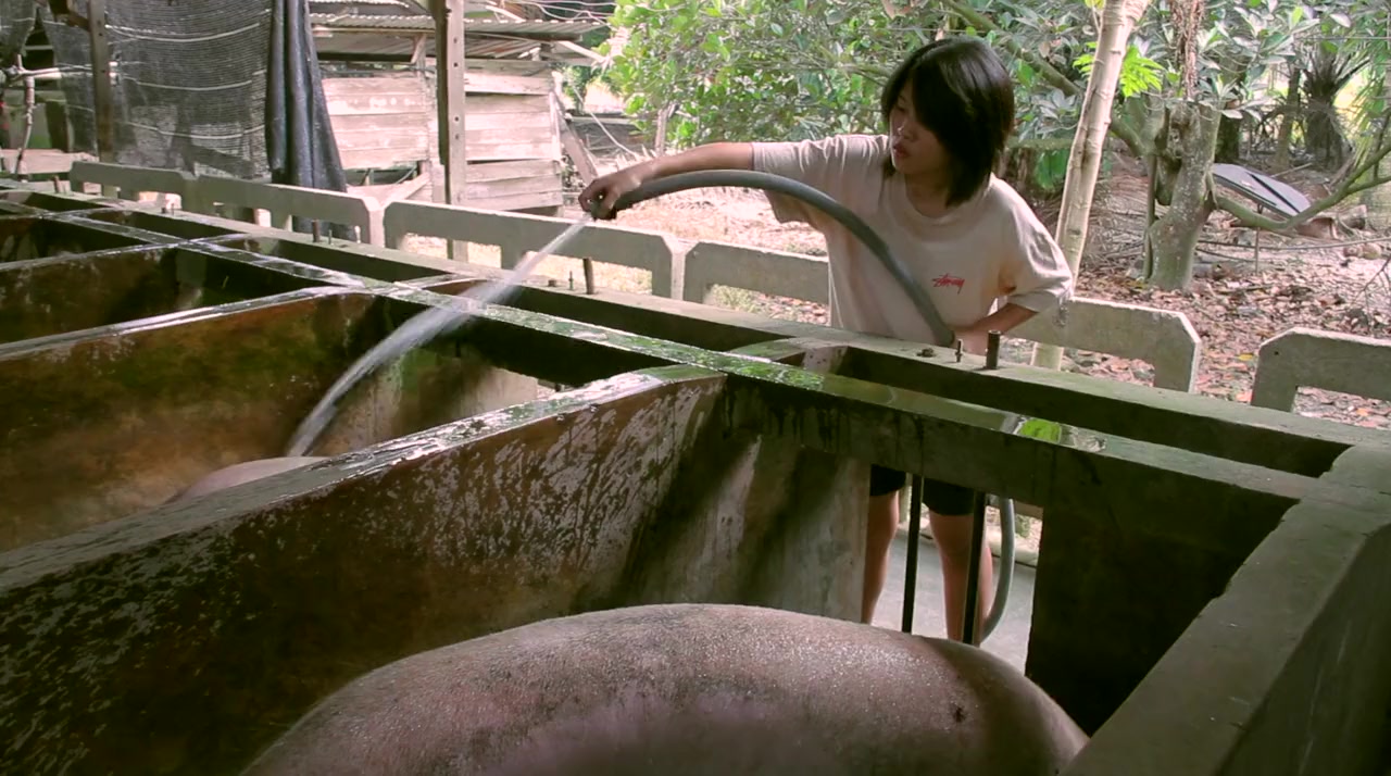 Disgruntled Mei works on a pig farm and a butcher shop. One night she takes money from boyfriend Seng, breaks his heart, and boards a ship to Japan to work there illegally. A month later she gets deported. Her ex-boyfriend Seng picks up her up from the harbour. The young ex-couple spends the night trying to come to terms with how they came to their lives of shattered dreams and forsaken love. Angry words were exchanged, but as morning comes, in the face of fate's inevitability, they inhale in resignation.—Anonymous