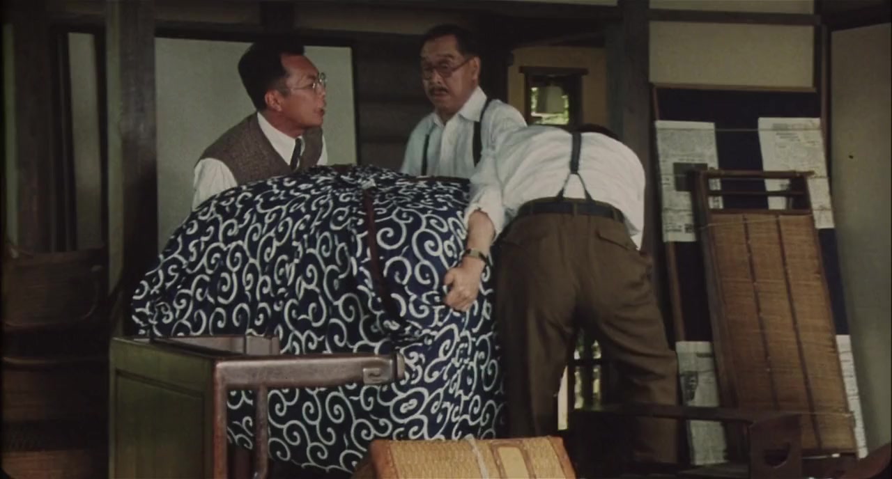This film tells the story of professor Uehida Hyakken-sama (1889-1971), in Gotemba, around the forties. He was a university professor until an air raid, when he left to become a writer and has to live in a hut. His mood has hardly changed, not by the change nor by time. Every year his students celebrate his birthday, issuing the question "Mahda kai?" (not yet?), just to hear Uehida-san's answer "Madada yo!" (No, not yet!), in a ritual of self affirmation, and desires of lasting forever. It's a very "japanese" film who portrays everyday life and customs in Japan.—Jaime Moraga