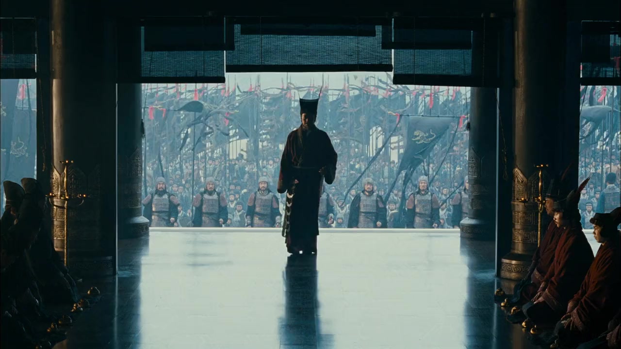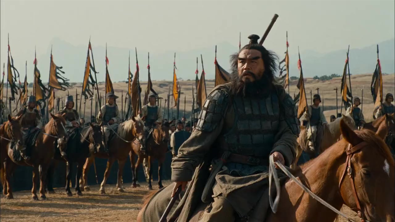 In Autumn of 208 AD, 100,000 peasants fled with their beloved leader Liu Bei from Cao Cao's million man army. With the aid of heroes like Zhao Yun (the subject of the new "Three Kingdoms: Resurrection of the Dragon" film) and Zhang Fei, they escape across the Great River (Chinese 'Yangtze') to take refuge with Sun Quan, the leader of the south. As Cao Cao prepares his huge navy to invade southern China and destroy them both, geniuses like Zhuge Liang and Zhou Yu devise a grand strategy. They hope to destroy Cao Cao's 10,000 ships with fire upon the river, but must first trick Cao Cao into chaining his ships together, and then change the direction of China's famous and freezing North Wind. While these two struggle to put aside the rivalry between Liu Bei and Sun Quan's forces, they must hatch their legendary schemes before Cao Cao is ready. This synopsis is based on the events of the 600 year old story - "Romance of Three Kingdoms" - the favorite novel of over 1 billion Chinese people and the most famous novel in Asia.Director John Woo said in an interview with CCTV-6 that the film will use primarily the historical record Chronicle of the Three Kingdoms as a blueprint for the Battle of Red Cliffs, rather than the historical novel Romance of the Three Kingdoms. As such, traditionally vilified characters such as Cao Cao and Zhou Yu will be given a more historically accurate treatment in the film. On Its Theatrical Release when it the two parts were released as one film.....Part 1>> In the summer of AD 208 during the Eastern Han Dynasty, the imperial army led by Chancellor (or Prime Minister) Cao Cao embarks on a campaign to eliminate the southern warlords Sun Quan and Liu Bei in the name of eliminating rebels, with the reluctant approval of the Emperor. Cao Cao's mighty army swiftly conquers the southern province of Jingzhou and the Battle of Changban is ignited when Cao Cao's cavalry unit starts attacking the civilians who are on an exodus led by Liu Bei. During the battle, Liu Bei's followers, including his sworn brothers Guan Yu and Zhang Fei, give an excellent display of their legendary combat skills by managing to hold off the enemy while buying time for the civilians to retreat. The warrior Zhao Yun fights bravely to rescue his lord Liu Bei's entrapped family but only succeeded in rescuing Liu's infant son. Following the battle, Liu Bei's chief advisor Zhuge Liang sets forth on a diplomatic mission to Eastern Wu to form an alliance between Liu Bei and Sun Quan to deal with Cao Cao's invasion. Sun Quan was initially in the midst of a dilemma of whether to surrender or resist, but his decision to resist Cao Cao hardens after Zhuge Liang's clever persuasion and a subsequent tiger hunt with his Grand Viceroy Zhou Yu and his sister Sun Shangxiang. Meanwhile, naval commanders Cai Mao and Zhang Yun from Jingzhou pledge allegiance to Cao Cao and were received warmly by Cao, who placed them in command of his navy. After the hasty formation of the alliance, the forces of Liu Bei and Sun Quan call for a meeting to formulate a plan to counter Cao Cao's army, which is advancing slowly towards Red Cliff at godspeed from both land and water. The battle then begins with Sun Shangxiang leading a light cavalry unit to lure Cao Cao's vanguard army into the Eight Trigrams Formation laid down by the allied forces. Cao Cao's vanguard army is utterly defeated by the allies but Cao Cao shows no disappointment and proceeds to lead his main army to the riverbank directly opposite the allies' main camp where they laid camp. While the allies throw a banquet to celebrate their victory, Zhuge Liang thinks of a plan to send Sun Shangxiang to infiltrate Cao Cao's camp and serve as a spy for them. The duo maintain contact by sending messages via a pigeon. The film ends with Zhou Yu lighting his miniaturised battleships on a map based on the battle formation, signifying his plans for defeating Cao Cao's navy.Part 2>> Sun Shangxiang has infiltrated Cao Cao's camp and she has been secretly noting details and sending them via a pigeon to Zhuge Liang. Meanwhile, Cao Cao's army is seized with a plague of typhoid fever which kills a number of his troops. Cao Cao cunningly orders the corpses to be sent to the allies' camp, hoping to pass the plague on to his enemies. The allied army's morale is affected when some unsuspecting soldiers let the plague in, and eventually a disheartened Liu Bei leaves with his forces while Zhuge Liang stays behind to assist the Eastern Wu forces. Cao Cao hears that the alliance had collapsed and is overjoyed. At the same time, his naval commanders Cai Mao and Zhang Yun propose a new tactic of interlocking the battleships together with iron beams to minimize rocking when sailing on the river and reduce the chances of the troops falling seasick. The Eastern Wu forces look on as Liu Bei leaves the alliance. From front to back: Zhou Yu (Tony Leung), Sun Quan (Chang Chen), Lu Su (Hou Yong). Subsequently, Zhou Yu and Zhuge Liang make plans on how to eliminate Cao Cao's naval commanders Cai Mao and Zhang Yun, and produce 100,000 arrows respectively. They agreed that whoever fails to complete his mission will be punished by execution under military law. Zhuge Liang's ingenious strategy of borrowing of arrows with straw boats brought in over 100,000 arrows from the enemy and aroused Cao Cao's suspicions about the loyalty of Cai and Zhang towards him. On the other hand, Cao Cao sends Jiang Gan to persuade Zhou Yu to surrender, but Zhou Yu tricks Jiang Gan instead, into believing that Cai Mao and Zhang Yun are planning to assassinate their lord Cao Cao. Both Zhuge Liang and Zhou Yu's respective plans complement each other when Cao Cao is convinced, despite earlier having doubts about Jiang Gan's report, that Cai and Zhang were indeed planning to assassinate him by deliberately 'donating' arrows to the enemy. Cai and Zhang are executed and Cao Cao realised his folly afterwards but it was too late. In the Ea