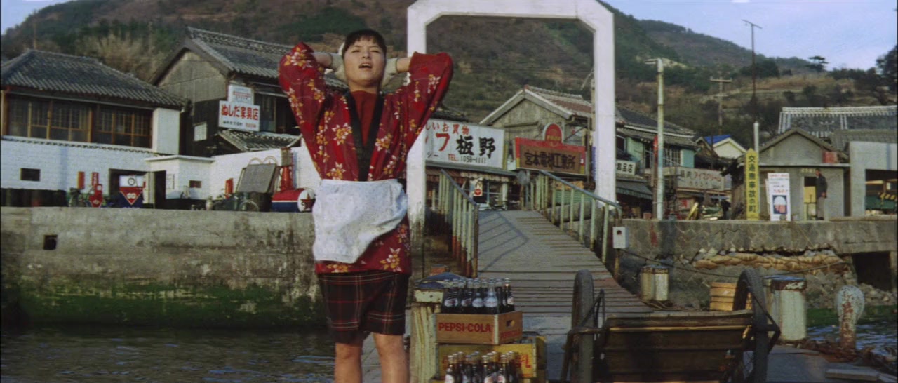 Sentimental comedy taking place at a harbour in the inland sea.