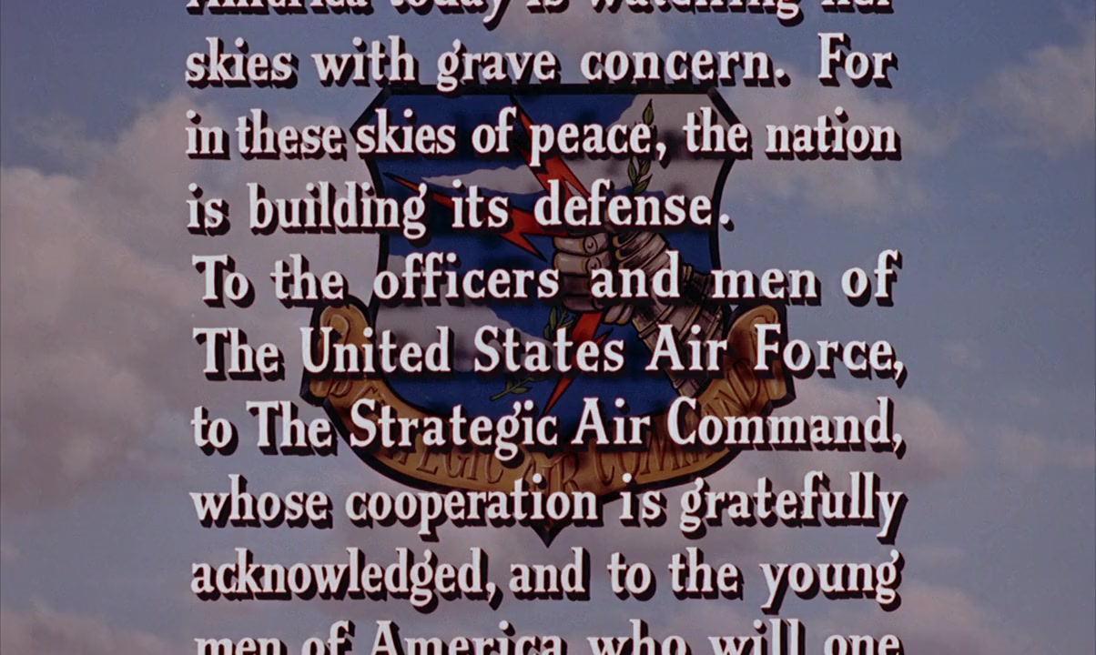 Thinking that his fighting days are over, Robert "Dutch" Holland (James Stewart) had become a successful third baseman for the St. Louis Cardinals, only to be recalled into the newly-formed Strategic Air Command. Set in 1955, when the Cold War is rapidly heating up, SAC has been formed to provide the ultimate deterrent to World War III. By building up a powerful force of nuclear-armed bombers and keeping them on a war-ready status at all times, SAC's leader, Gen. Hawkes (Frank Lovejoy) hopes to keep the "enemy" from starting another devastating conflict. Unfortunately, he is forced to recall reserve pilots and crew from their private lives in order to fill his needs.Holland, promoted to Lt. Colonel, grudgingly accepts the assignment, along with some other equally unhappy airmen, many of whom are old acquaintances from bomber missions flown over Tokyo in 1945. Holland's wife Sally (June Allyson) is less than pleased with the turn their life has taken, and isn't happy about her husband being sent out on dangerous missions when there isn't even a war going on. Also, she soon discovers that she's pregnant, and though she tries to support her husband's efforts to do his job, Holland is soon torn between his sense of duty to his men and country, and his responsibilities to his wife and family.Holland flies missions in the massive B-36 "Peacemaker" bomber, a plane that can take off from its base in Texas and fly non-stop to Alaska and back while carrying a crew of a dozen men and more destructive power than a thousand WW-2 bombers. Over the next few months, Holland helps form SAC into a tightly run, well oiled machine, but it means long stretches away from Sally; she's come to dread the sound of the phone ringing, fearing it will be terrible news about Dutch.Holland is flying a cold-weather test mission over Greenland at -40 degrees when his plane's fuel tank seals fail, and the fuel sloshing around in the left wing starts a fire. Nothing they can do will extinguish it, and Holland orders the crew to bail out. Realizing he's too low to bail out himself, he rides the big plane down to a belly landing on the snow, and spends days trapped in the plane's wreck before rescue arrives. Meanwhile, Sally has given birth, and is overjoyed to hear that her husband is alive with only a twisted shoulder for an injury.Returning to duty, Holland is shown the newest addition to SAC's inventory: the futuristic B-47 Stratojet, a sleek, swept-wing jet plane that looks like nothing Dutch has ever seen before. Gen. Hawkes wants Col. Holland to head up the new Stratojet bomber force, but Sally has different plans. Wrangling an opportunity from Dutch's old boss with the Cardinals that she knows he will take, he can finally leave the Air Force behind. Joyfully presenting this to Dutch that night, she is dismayed to see that he has been thinking about his duty to SAC, and has decided to stay. He tries to explain his reasons, his belief that he's doing something far more important than he's ever done, his desire to serve his country and protect his family by staving off war, but Sally is heartbroken, and Dutch must leave on yet another mission.Still bothered by his shoulder injury, Holland leads a massive deployment of the entire wing to Japan, a tremendous undertaking designed leave no doubt in an enemy's mind about what SAC can accomplish. It will also stretch SAC to its limits, and push everyone to the breaking point. Sally tries to speak to her husband one last time before he takes off, but she's too late. Flying non-stop to their base in Japan, Dutch keeps track of all his planes and people, and manages to get everyone there safely, but when it's his turn to land the field is socked in with fog, and Dutch can barely move his right arm. With the help of his co-pilot, he manages a hair-raising blind landing, and collapses from exhaustion.Grounded by his shoulder, Gen. Hawkes is finally forced to release Holland from the Air Force. But before he leaves, he tells Dutch just how much good he has done for SAC. The example he set for his men, staying in even when he had every reason to leave, has done more good for the force than he can imagine. Sally is overjoyed that she's got her husband back at last, and Holland leaves, knowing he has done his duty.