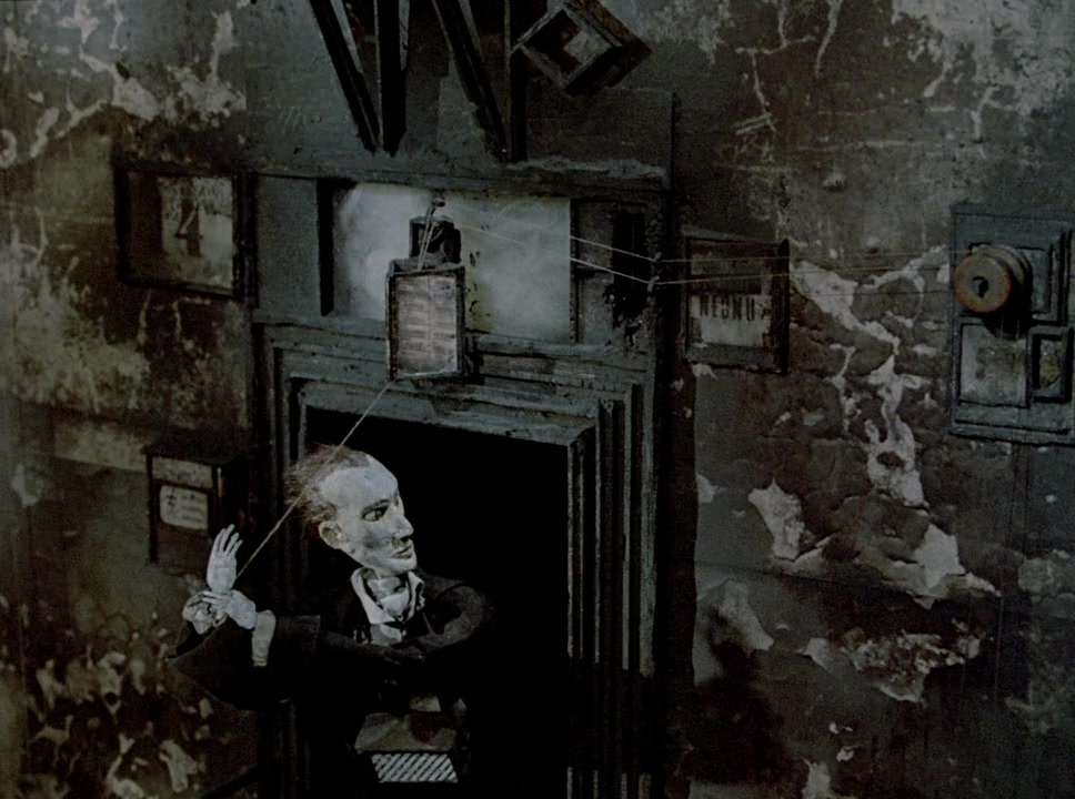 Adapted from Polish writer Bruno Schulz's book, Stephen Quay and Timothy Quay's cornucopia of eerie enchantment portrays a dark underworld that envelops an emaciated puppet. More and more, a stringless marionette wanders deeper and deeper into this desolate realm of strange mechanical rituals, only to find itself devoured by carceral isolation. Now, a triplet of sinister female figures watches its every move from afar. Is there an escape from the horrible street of crocodiles?—Nick Riganas