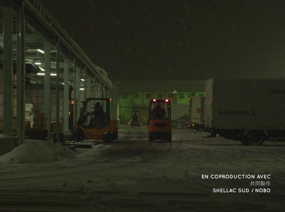 Snow covered mountains in Japan. Every night, a fisherman makes his way to the market in town. His 6-year-old son is awoken by his departure and finds it impossible to fall back to sleep. In the sleeping household, the young boy draws a picture he then slips into his satchel. On his way to school, still drowsy, he strays off the path and wanders into the snow.—MLD Films, Shellac