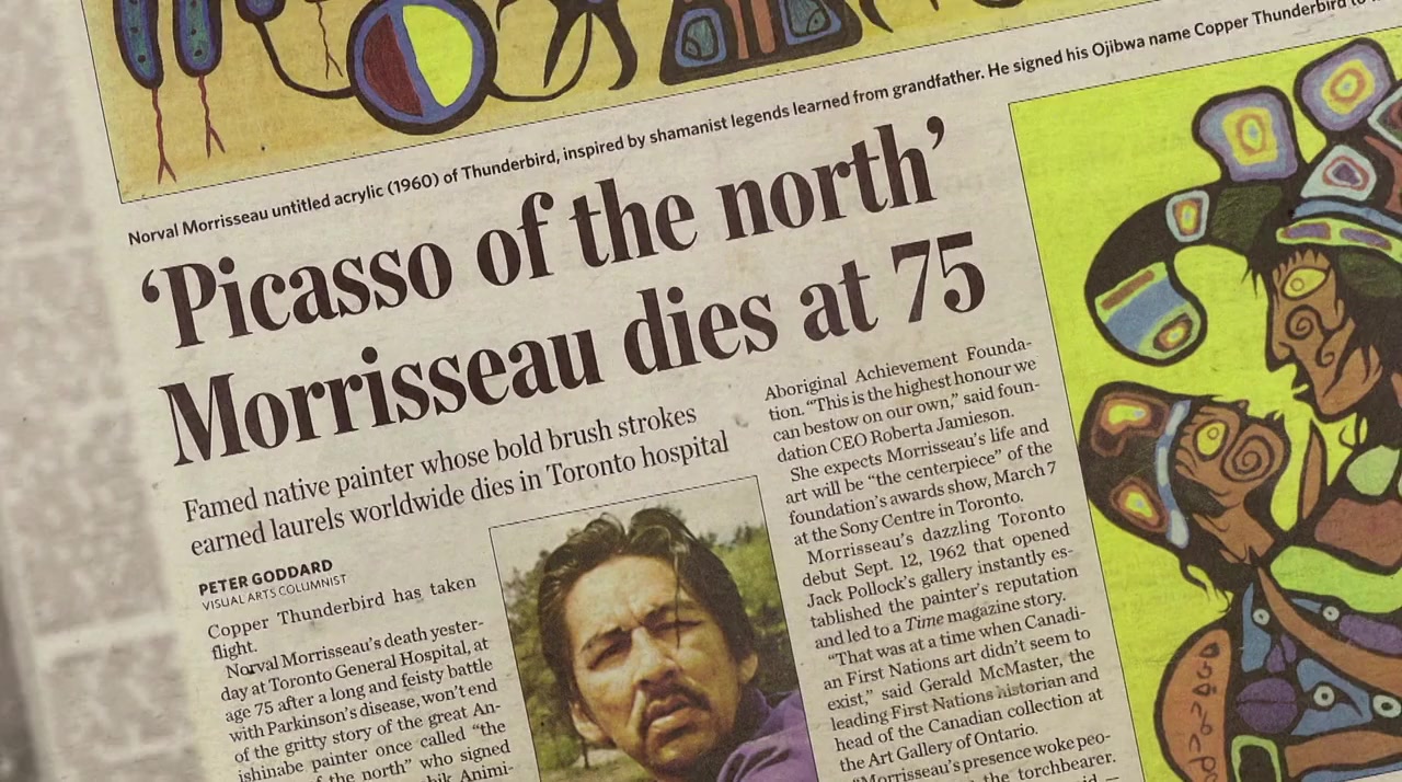 Barenaked Ladies' keyboardist Kevin Hearn, an art collector, goes shopping at the respectable Maslak-McLeod Gallery intending to purchase a Norval Morrisseau (1932-2007) - arguably the first modern Canadian indigenous painter to receive widespread acclaim - the one ultimately purchased being for $20,000. While Hearn is displaying his art collection, including the Morrisseau, at the Art Gallery of Ontario, he is informed by the gallery owner that he has removed that painting from the display as it is a fake. Going back to Maslak-McLeod to get his money back, Hearn faces resistance from gallery owner Joe McLeod for several reasons, Hearn in turn suing McLeod for the $20,000, such an act which has never been successful in the difficulty of proving the intent of fraud even if the piece itself can be proved to be a fake. This public act opens the heated discussion among a number of individuals on both sides of the issues: on one side, the so-called experts and Morrisseau insiders who believe they can identify fakes, and on the other side Morrisseau private collectors and independent dealers who assert that there are no fake Morrisseaus in circulation, both sides contending that their stance is first and foremost to protect Morrisseau's good name and reputation. While this heated discussion is a direct result of the legal action, Hearn will find that the story spins off into directions that he probably never envisioned including illegal drug dealing, sexual assault and the broader issue of the effects of western colonization on the indigenous peoples, with many involved in the story musing about what Morrisseau would have thought about the proceedings if he was still alive.—Huggo