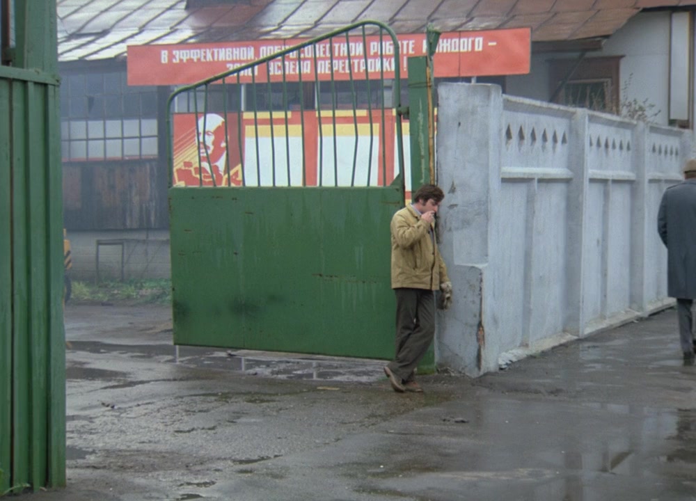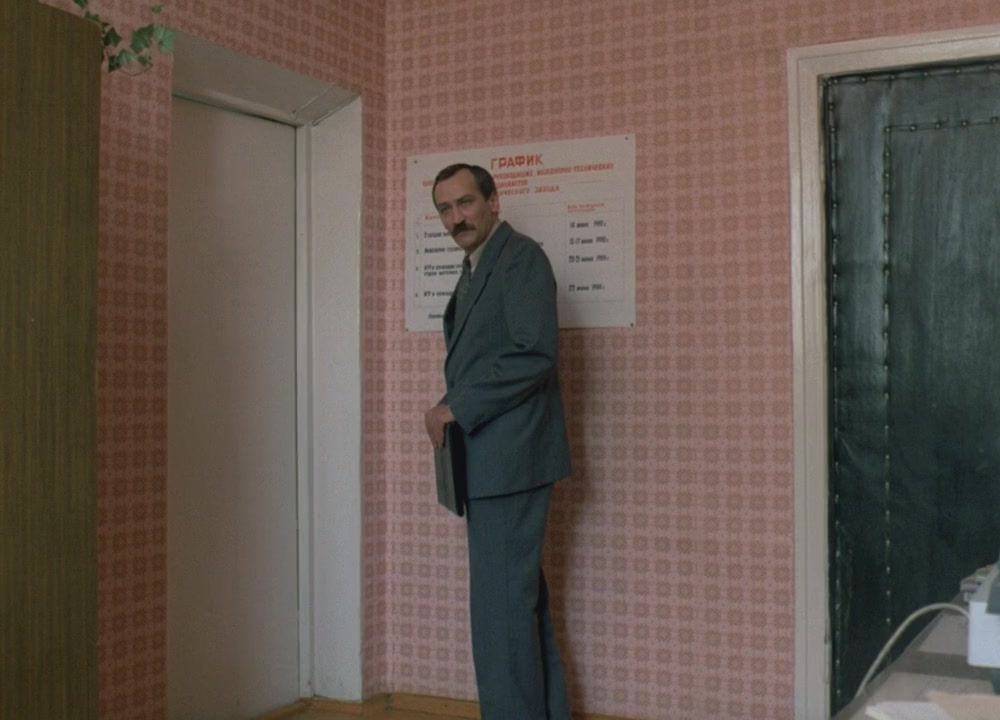 An engineer in charge of the production line of a factory in Moscow is sent to a small town to try to specify the distributor the new dimensions of a mechanic part they need. But in this town everybody seems to be crazy (a secretary who works naked, a group of people take the engineer as a rock & roll player, etc) and, in addition, this man is witness of a suicide, so he is trapped inside the town.—Michel Rudoy