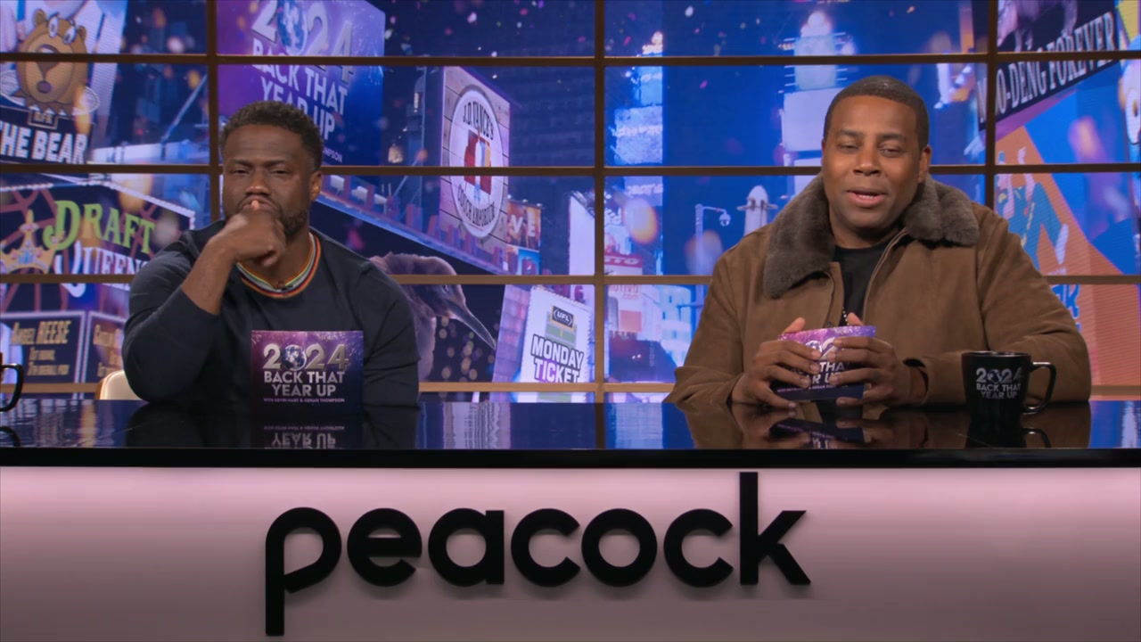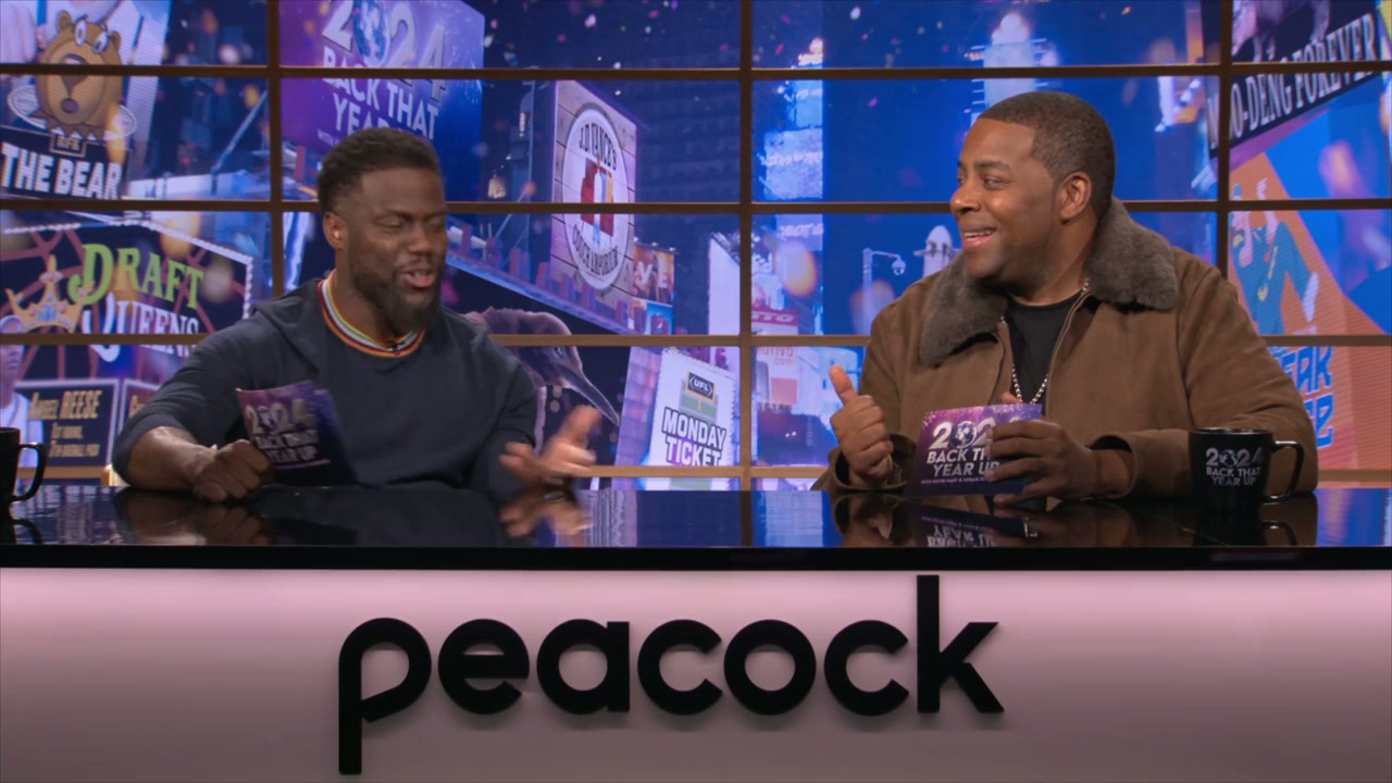 Kevin Hart and Kenan Thompson laugh at 2024 with Jon Hamm, Mookie Betts, Nate Bargatze and more.