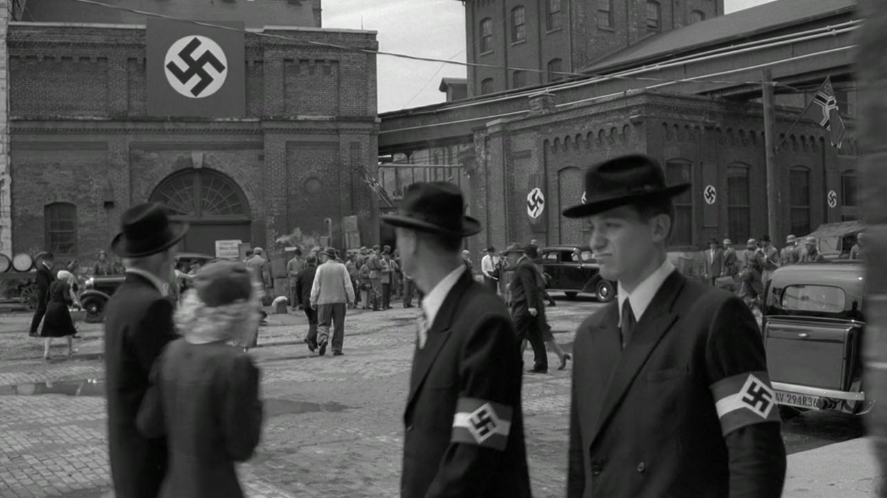 A U.S. official escorts Holocaust refugees from 1940s war-torn Europe to temporary shelter in America.