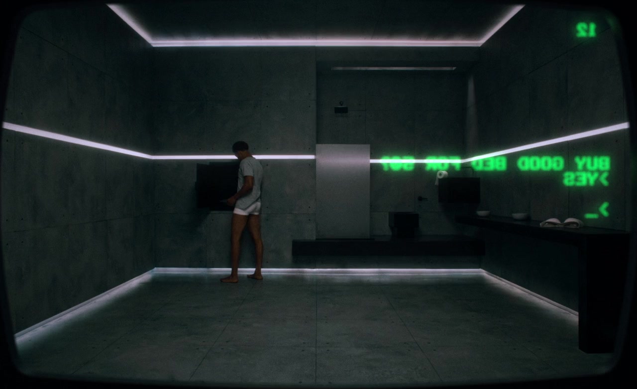 A man struggles to survive after awakening alone, trapped in a society connected only by primitive computers, where the ability to entertain is his only currency. The first feature film ever to be shot entirely from one fixed camera angle.