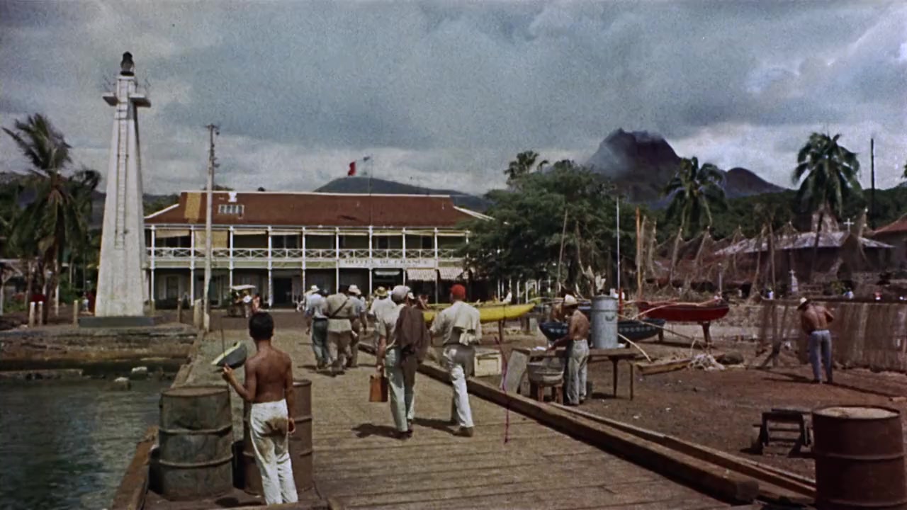 A crusty, eccentric priest recruits three reluctant convicts to help him rescue a children's leper colony from a Pacific island menaced by a smoldering volcano.